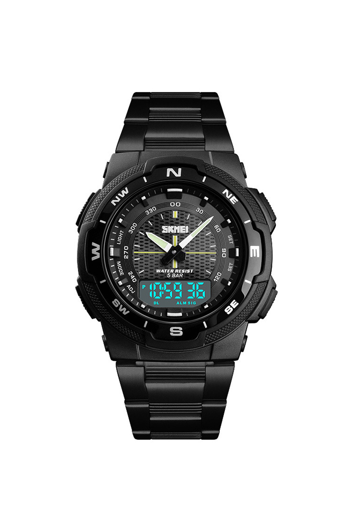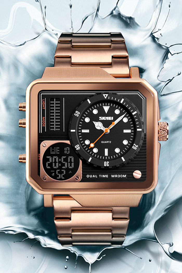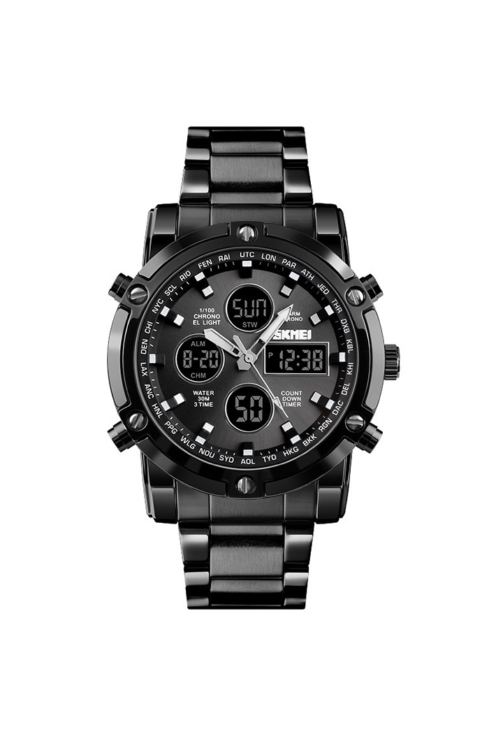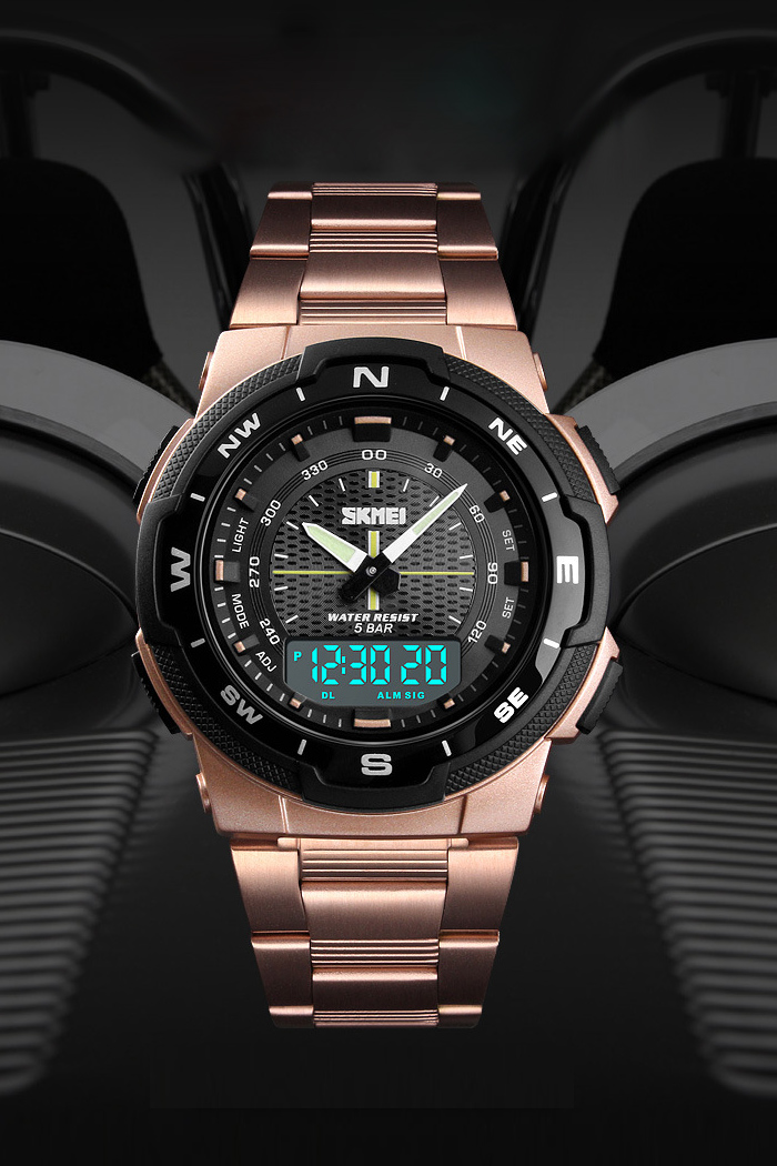 Reloj De Los Hombres De La Banda De Acero De La Prenda Impermeable De Los Deportes Al Aire Libre Del Tiempo Doble