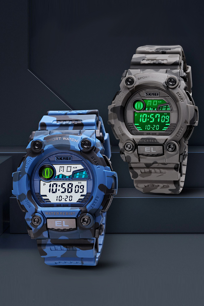 Reloj Electrónico De Camuflaje Con Doble Pantalla Impermeable Para Hombres